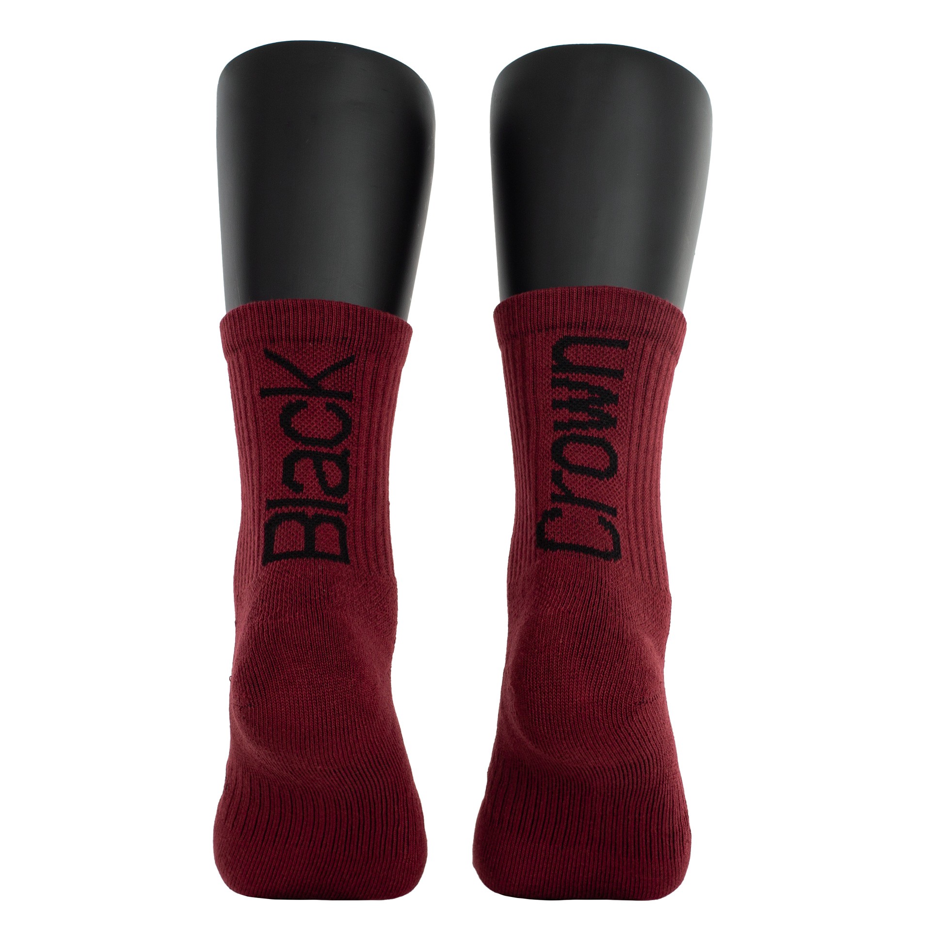 Calcetines de color negro con las letras Black Crown en color coral o azul celeste.